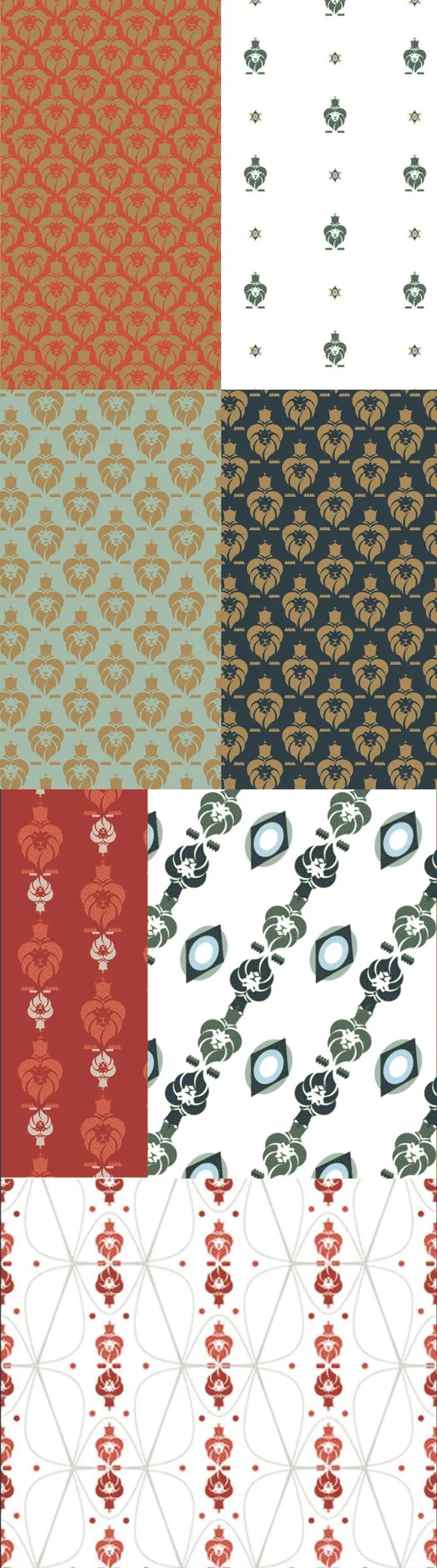 Gift wrap, drapes, back drapes, linen, inner parts for folders and packaging, wall paper.